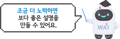 안녕하세요. 저는 여러분이 좋은 설명을 만들 수 있도록 도와주는 인공지능 와이(WA3I)선생님입니다.